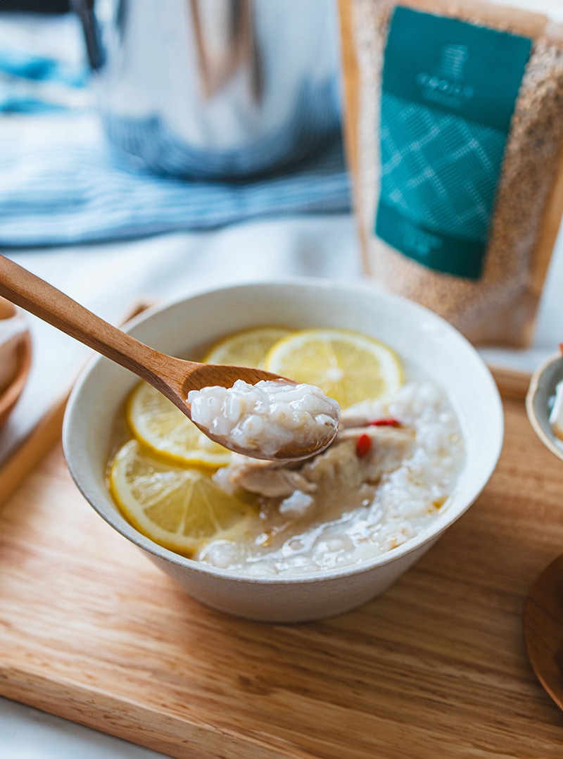 もち麦とレモンの鶏粥